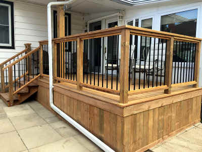 The scope of this project was to design and build an 8 foot x 16 foot deck with new stairs and railings. The surface of the deck has no visible screws... I used the CAMO fastening system which screws the deck boards from the side.